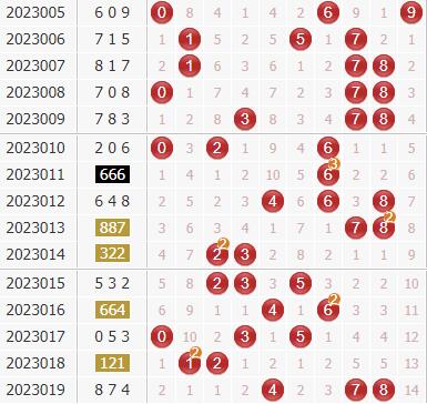 福彩3D第2023019期奖号为奖号:874。奖号类型为组六,和值为19,奇偶比为1:2,跨度为4,012路比为0:2:1,大小比为2:1。3d第2023020期分析如下: