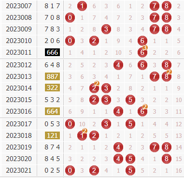 福彩3D第2023021期奖号为奖号:025 和值:7 跨度:5 奇偶形态:偶偶奇 大小形态:小小大 022路。3d第2023022期分析如下: