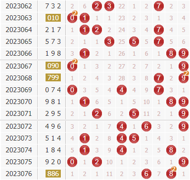 福彩3D第2023076期开出奖号:886,奖号012路比为1:0:2,奇偶比为0:3,和值为22。 3d第2023077期综合分析如下: