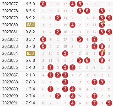 [百位分析]上期出号7,百位小数号码近期占优,1路号码近期占优,本期百位关注号码14579