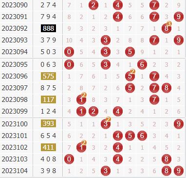 福彩3D第2023104期奖号为奖号:398,奖号类型为:组六,奖号冷温热态为:热号+热号+热号。 3d第2023105期分析如下: