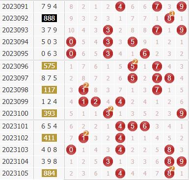 福彩3D第2023105期开出奖号:884,奖号和值为:20,奖号跨度为:4,奇偶形态为:偶偶偶,大小形态为:大大小。 3d第2023106期综合分析如下: