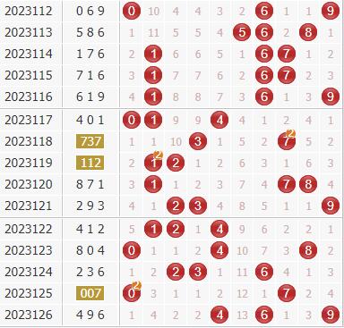 福彩3D第2023126期开出奖号:496。奖号形态开出组六,奇偶比开出1:2,012路比为2:1:0,大小比为2:1。 3d第2023127期综合分析如下: