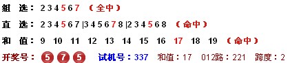 上期3d之家免费预测专家风清扬命中和值,直选命中直选,命中组选!上期大小形态开全大。本期大小形态推荐:大大小、小大大、大小小、小小大。奇偶形态全奇,本期推荐:奇偶偶、偶偶奇、偶奇奇、奇奇偶。和值推荐区间:9-20。