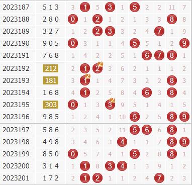 福彩3D第2023201期奖号为奖号:172,其中奖号大小比为1:2,奇偶比为2:1,012路比为0:2:1,和值为10,跨度为6。 3d第2023202期分析如下: