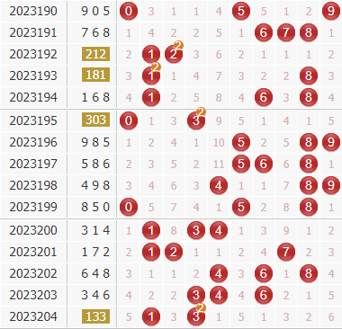 百位分析:第2023200期-第2023204期开出号码:31631,波动了5个点位,分别较松散,本期预计该位下降,关注号码0。