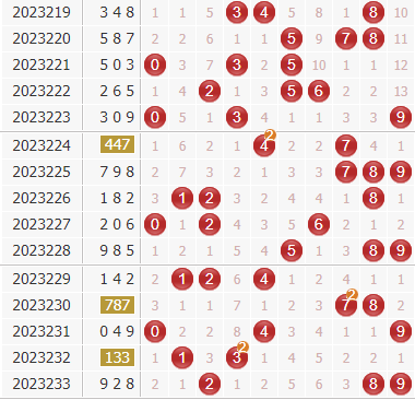 福彩3D第2023233期奖号为奖号:928,和值19,跨度7,形态:奇偶偶、大小大。3d第2023234期分析如下: