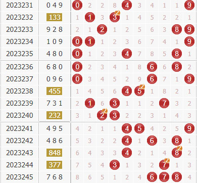 23246期胆码推荐:237开出1-3个,金胆:8银胆:7