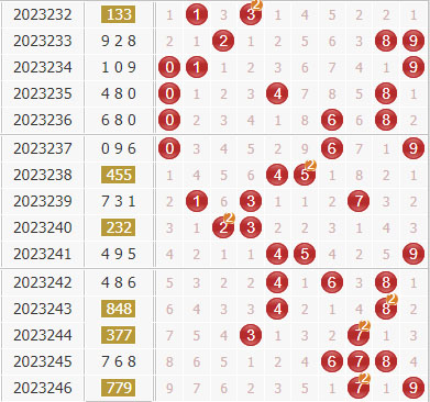福彩3D第2023246期奖号为奖号:779。奖号形态开出组三,和值开出23,跨度开出2,奇偶比开出3:0,012路比开出1:2:0,大小比开出3:0。3d第2023247期分析如下: