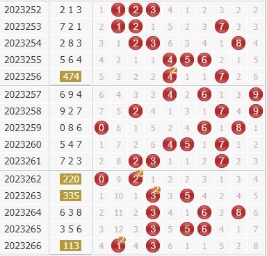 跨度分析:在第267期同期历史奖号中,号码跨度奇偶比为15:6,大小比为13:8,012路比为5:6:10,跨度开出频次分别为:跨度5出现7次,跨度1出现5次,跨度6出现3次,跨度3、8出现2次,跨度2、7出现1次,跨度0、4、9出现0次,本期关注奇数跨度出现,一码跨度参考9。
