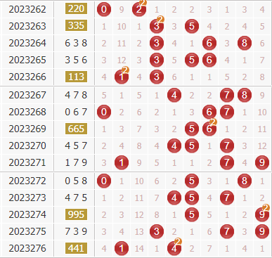 福彩3D第2023276期奖号为奖号:441,其中奖号奇偶比为1:2,大小比为0:3,012路比为0:3:0,和值为9,跨度为3。 3d第2023277期分析如下: