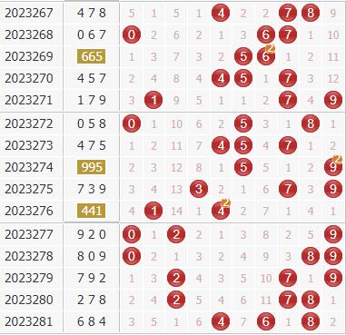 福彩3D第2023281期奖号为奖号:684,其中奖号组选类型为:组六,奇偶比为0:3,大小比为2:1,012路比为1:1:1,和值为18,跨度为4。 3d第2023282期分析如下: