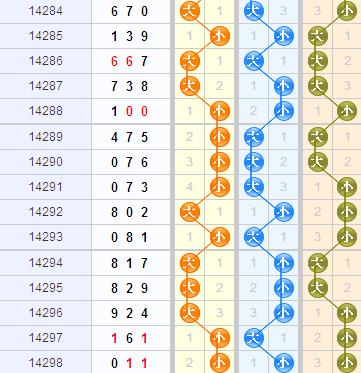 上期是福彩3d298期,上期开出了011,和值是2,这是个比较小的和值,可以说今年第二小和值。小马哥觉得本期和值应该不会有太大变动,会在14上下徘徊,可关注和值17。