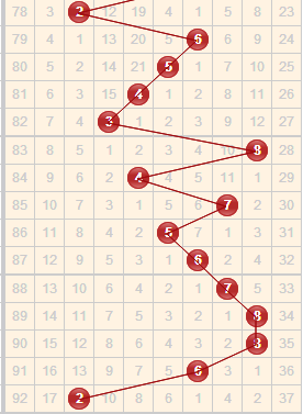 跨度分析:上期开出了跨度2,从近期的跨度走势上来看,在连续几期开出大跨度之后终于开出了小跨度2,本期可继续关注小跨度。结合走势,本期推荐关注跨度:2、3、4、7