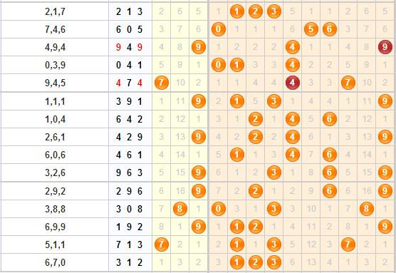 重复号分析:上期开出了312,上上期也就是第14314期开出了713,这么来看重复了1号球跟3号球,本期的话,重复号还是需要重点关注,主要关注的是1号球跟2号球的开出。