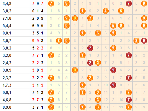 根据上面近15期的号码走势来分析,最近组三组合开出的很是频繁,15期中9期开出了组三,而上期开出的是组六,根据前两期的组合走势本期需防组三开出。近来这几期奇数走势大热,连续4期开出了全奇组合,其中3号球、7号球都连续开出了3期,本期可防守。根据走势,本期重点关注三胆157。