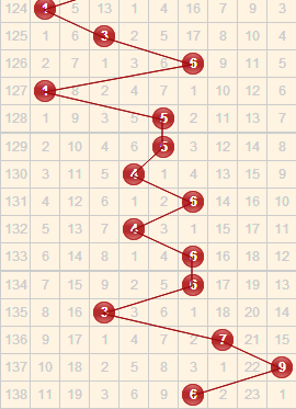 跨度分析:上期的跨度是6,近5期开出的跨度是6-3-7-9-6,近期中跨度6走势比较热,15期中有开出5期,结合走势本期可重点关注3-8之间的跨度,本期具体推荐跨度:3、4、5、8。