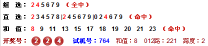 昨晚开奖号224,开出组三,观察近期的出奖形态,以组六为主,本期看好组六的开出。