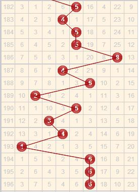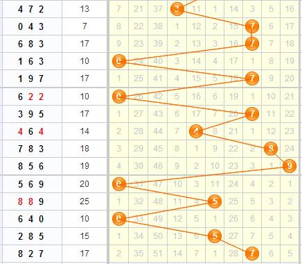 从和尾走势图中,可看出,和尾7开出的次数最多,在15期中占了5期,目前和尾2是遗漏期数最大的,根据走势图老夫子看好和尾0 3 4 5 7 8。