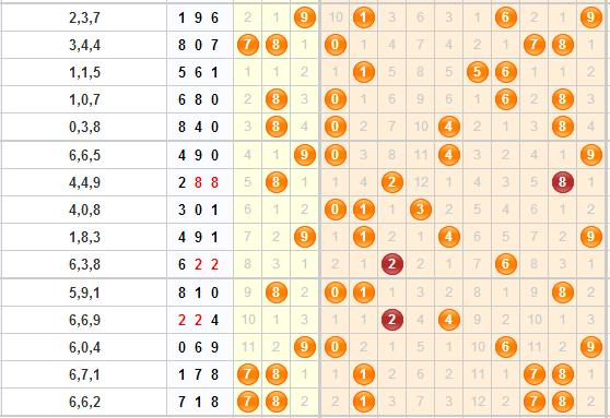 跨度分析:近5期开出的跨度是8-2-9-7-7,上期开出的是大跨度7,最近大跨度走势较为强势,15期中10期是大跨度,而小跨度还在遗漏中,根据走势,本期推荐关注跨度:3、4、6、7。
