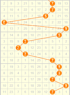 和尾分析:近六期和尾开出都集中在7-9之间,依次为7-8-8-7-9-7,和尾开出一直重复,本期可防和尾的重复开出,并注意邻边的和尾,本期和尾推荐6,7,8,9。