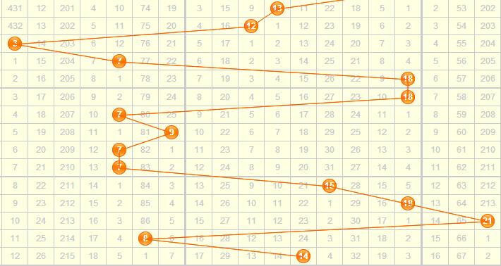 从近15期的和值分布来看,第一区域和第二区域的和值都开出了7期,第三区域的和值开出了1期,和以往相比,近期第一区域的和值开的比较多,走势很热,本期可适当关注。综合走势图,本期和值推荐:8、9、10、13、15、16、19。