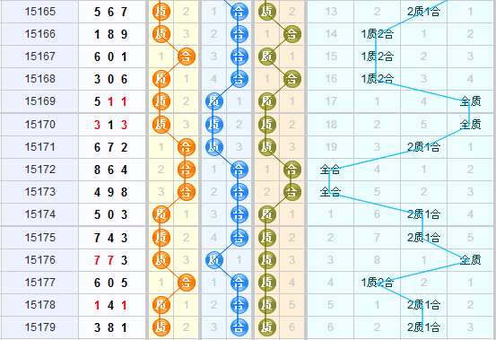 质合分析:百位上近十五期开奖号质数球有两次连开三期,目前质数球已经连开两期,所以本期将继续关注质数球的开出;十位上结合近十五期发现,合数球都是连开四期才会中断,目前合数球连开三期,所以本期继续看好合数球开出;个位上开奖号明显是质数球开出比较多,本期看好由质转合开出合数,本期质合推荐关注2合1质。