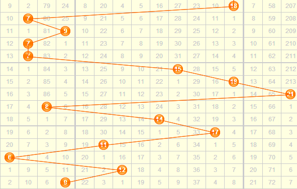 上期开出和值9,和值开在了第一区域内,近期开出和值之间的跨度比较大,预计本期和值会向右移动,开在第二区域。结合走势,本期老船长推荐关注和值11 13 15 16 18 19
