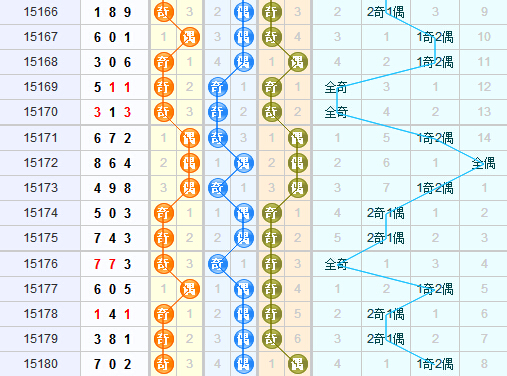 个位上:近15期,奇号球开出期数10期,偶号球开出期数5期,奇偶开出比例10:5,很明显奇号球开出期数比较多,本期建议关注奇号球的开出;