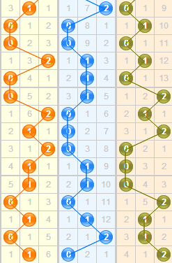 个位上:近4期,个位上的012路是在1路和2路两者之间开出,本期不看好开出0路,可以杀掉;