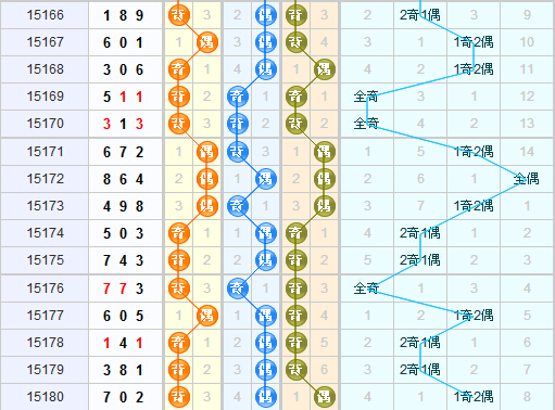 百位:百位上近十五期开奖号奇数球已经三次连开三期,走势火热,本期可防偶数球开出;