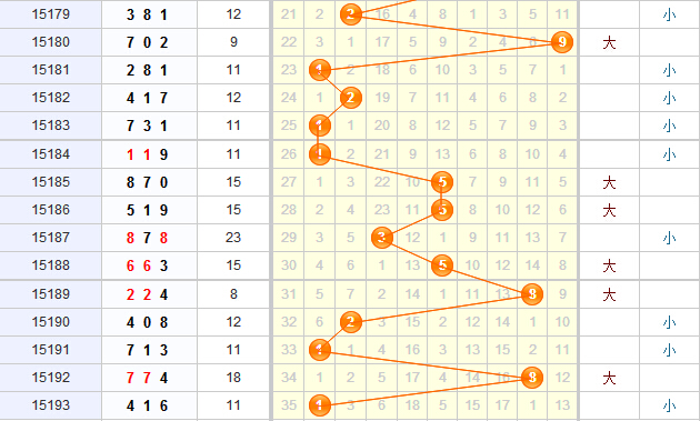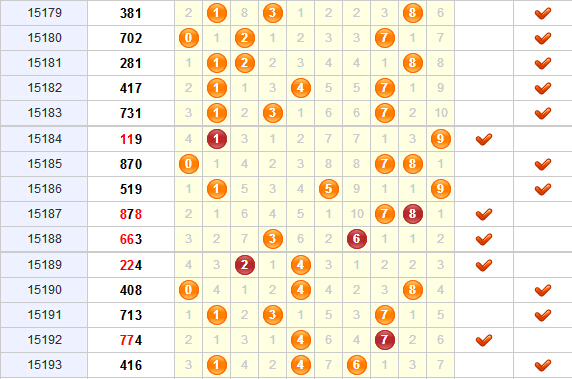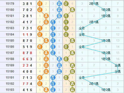 个位上:近15期,奇数球开出间隔最多不超过2期,到本期已经间隔2期,预计本期将会开出奇数球,推荐关注;