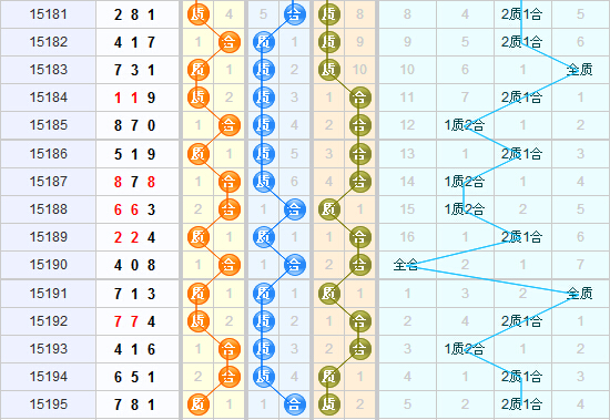 百位上上期开出的是质数号球,近5期前面两期开出的是质数球,接下来两期开出的是合数球,按照这个规律,本期推荐关注质数球的继续开出;十位上质数球的走势比较热,连续开出4期质数球之后开出合数球,合数球走势回暖,本期看好合数球的继续开出。个位上近期合数球和质数球两期交替开出来,上两期开出的是质数球,本期推荐关注合数球的开出。本期老船长结合近期的走势,本期的质合形态推荐:质合合、质合质、合质质。
