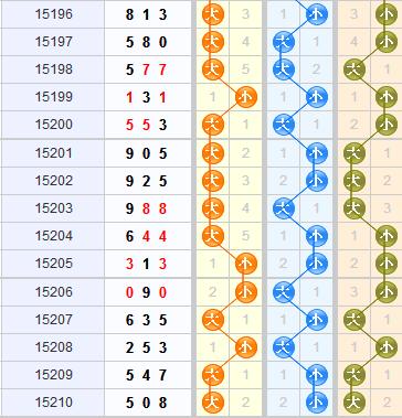 个位:个位上期开出了大数,连续开出了2期大数,本期开出大数和小数的可能性都存在,两者都可防一下;