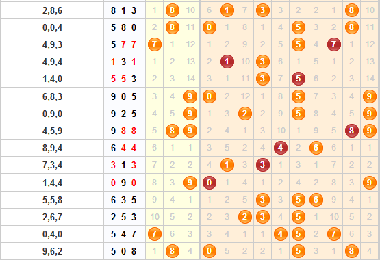 上期开出了号码508,继续组六形态,5号球的开出热度很高,连开出4期,热度极端了,本期不太可能再接着开出;1号球近十五期开出了3期,每期平均隔4期开出,遗漏了5期,本期有开出的可能性,周围有0号球的开出,本期看好1号球的开出;2号球近十五期开出了2期,走势平稳,可做防守码;3号球近期走势很热,近十五期开出了6期,遗漏了2期,本期看好3号球的开出;4号球附近有热号5号球的开出,可能会开出邻码4号球,要注意防守;6号球近十五期开出了2期,遗漏3期,本期可能会与4号球、5号球形成斜连号,本期关注6号球;9号球前期走势很热,近期开始变冷,也有可能与7号球、8号球形成斜连号开出;本期老夫子六码推荐:123469