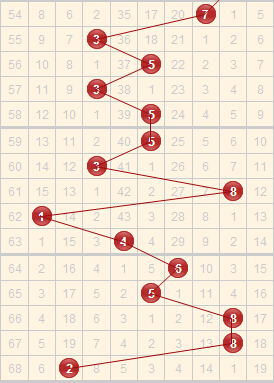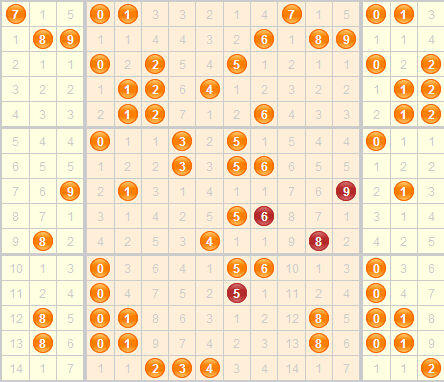 果不其然,连开两期大跨度8之后,直接转向了小跨度2,本期继续看好跨度2,重点推荐:2 3 4 5