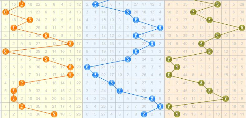 百位:上期百位开出6号球,是在间隔21期之后开出的,属于百位上的冷号球,本期可适当关注百位上开出重码;百位上期开出冷号球,本期可继续关注百位上开出冷号球,3号球在百位上12期未开出,7号球18期未开出,本期可适当关注它们的开出;4号球在百位上已经连续36期未开出,属于百位上的绝对冷号球,本期不看好开出;根据百位杀码公式:上期开奖号码的百位*3+3后取个位杀本期百位,6*3+3=21,取个位1,所以确定1号球是本期百位上的杀码;上期开奖号码的百位*7+7后取个位杀本期百位,6*7+7=49,取个位9,所以确定本期9号球也是百位上的杀码;上述杀码公式经过前几期的使用,准确率较高,本期继续使用;百位综合推荐:035678