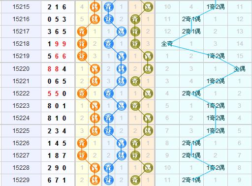 百位:上期百位开出偶数;从走势图上看,百位上开出偶数后会连续开出,本期继续看好百位上开出偶数;