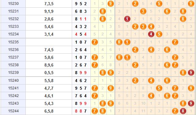 上期开奖号码是887,继续开出了组三形态,本期可适当关注组六形态的开出;7号球和8号球是近期热门的开奖号码,本期可适当继续关注,尤其是7号球,近期经常开出重码;0号球和1号球7期未开出,3号球10期未开出,本期可防它们爆冷开出;6号球前期走势较热,近两期未开出,本期也可适当关注;9号球近期总是隔期开出,上期未开出,本期可关注它隔期开出。