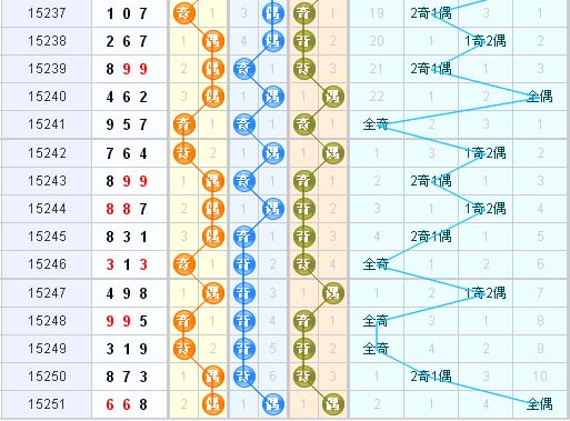个位:个位上期开出偶数,走势图上连续开出偶数的情况很少,本期看好个位上开出奇数;