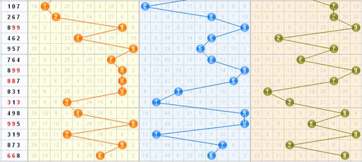 十位:上期十位开出6号球,是间隔8期后开出的,近15期,6号球一直走势较好,每次都是隔1期就开出,本期不看好6号球在十位上开出重码;5号球已经连续10期未在十位上开出了,本期可适当关注;根据十位杀码公式:上期开奖号码的百位和个位杀本期十位,所以确定本期6号球和8号球为本期十位上的杀码;这种杀码方式经过前几期的使用发现准确率较高,本期继续使用;十位综合推荐:034579