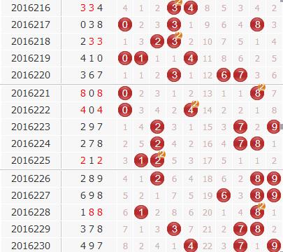 本期号码上数三期斜连号为478,百位4与上期开奖号码百位相同,4的补数6。取6以及6的对应数1、补数6作为下期胆码,定胆16。