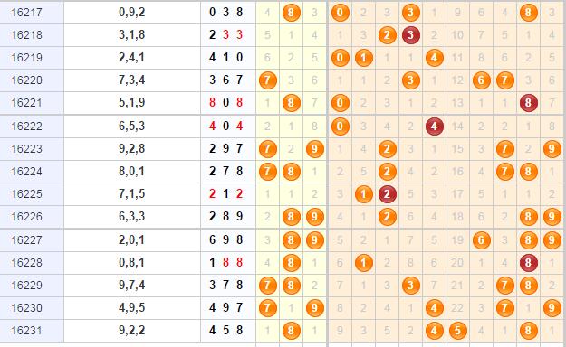 和值与跨度分析:和值在17点开出,本期和值在大和值区开出,下周期则看好在14点开出的可能性较大,但也要防大幅落至11点,以和尾1、2、4走势最为明显;跨度上看,跨度本期开出小跨4,下周期防5、6、7跨开出,看好5、6跨。