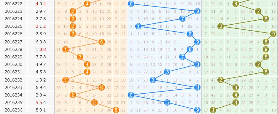 热号:上期奖号里的热码没有现身,从最近几期开奖结果看,2016237期热码有反弹信号。