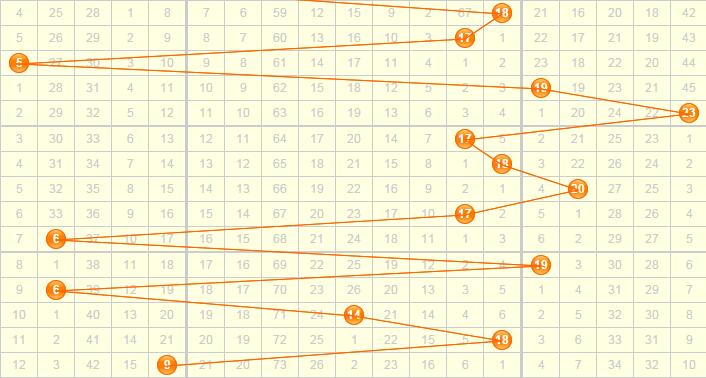 从近50期看,开出5有3次,到9、8有1次。我们从“遗漏表”中得出。首先排除2路的号,再排遗漏期数多的7、9,几率小的6、1,本期选择0、3、4。