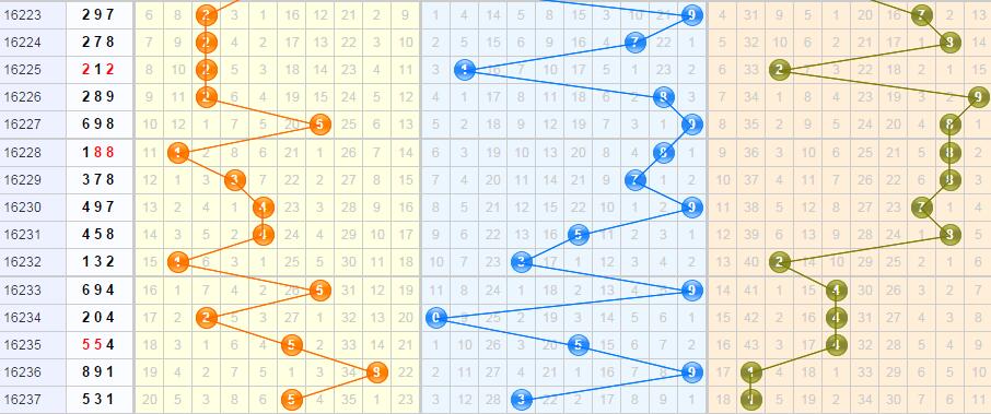 十位小、偶、温、0路是本期十位数上的首选,从上面的条件中我们可以得出首选0,而次一级关注3这个数。