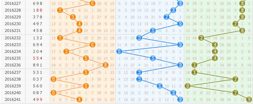温号:241期百位开出温号4,根据以往走势判断,242期笔者建议继续跟进温态号码的续落,具体看好个位。