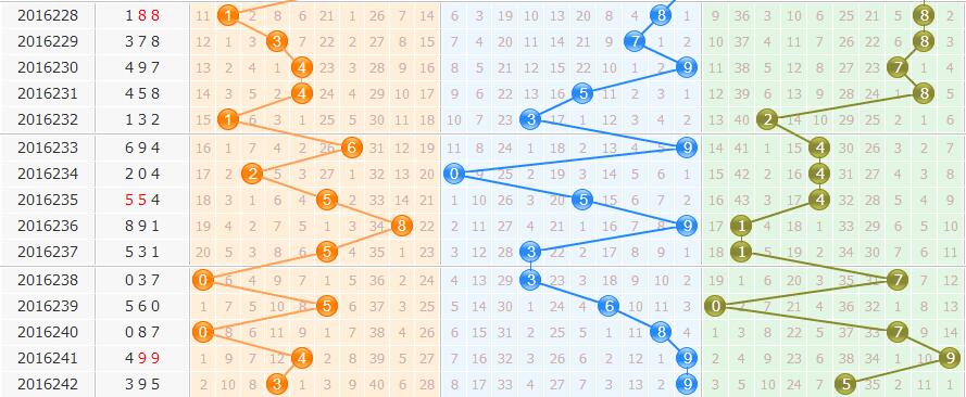 十个差:十个差在上期开出4点,最近三期十个位差值宽幅震荡,预计243期十个差值振幅回落至1-3点。