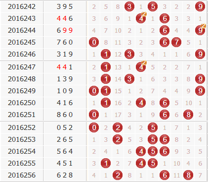 从近期的走势来看,重复号开始趋冷,斜连号开始走强,上期开出了2个斜连号分别是1的斜连2,5的斜连6,本期推荐看好2的斜连号3,6的斜连号7。3号原来是隔期号目前在走冷,近期可能会回温,可以选择3号作为胆码;7号在近期一直是冷号,目前还是遗漏值最大的号码,因此本期开出的可能性增大,可看好;5号连开4期,表明5号是近期的热号,既然是热号就有很高的概率会回补,本期也需要注意5号;0号走势平稳,目前隔期4期,开出概率已然越来越高,需要关注。