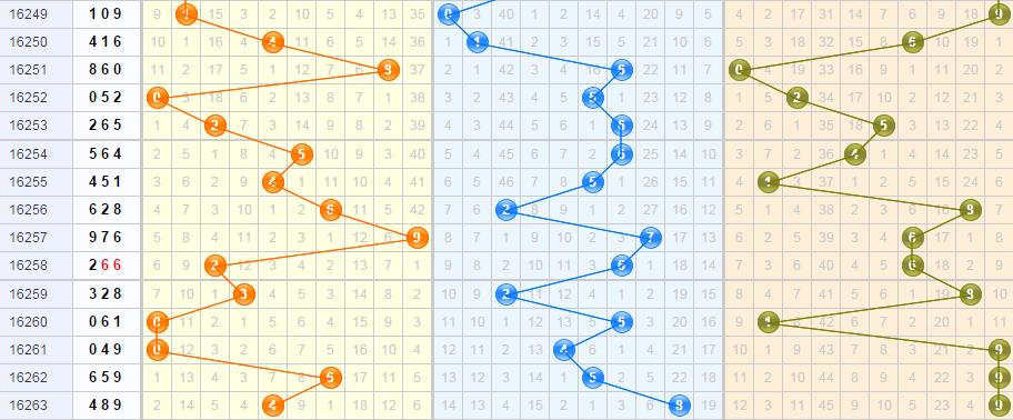 在除3余数走势中,上期开出余0路,本期依其走势推荐余1、2路;依其上面分析,除3余1、2和值推荐:13、14、18、20。16264期和值依其走势关注13、14、18、20。重点关注和值14、18、20。